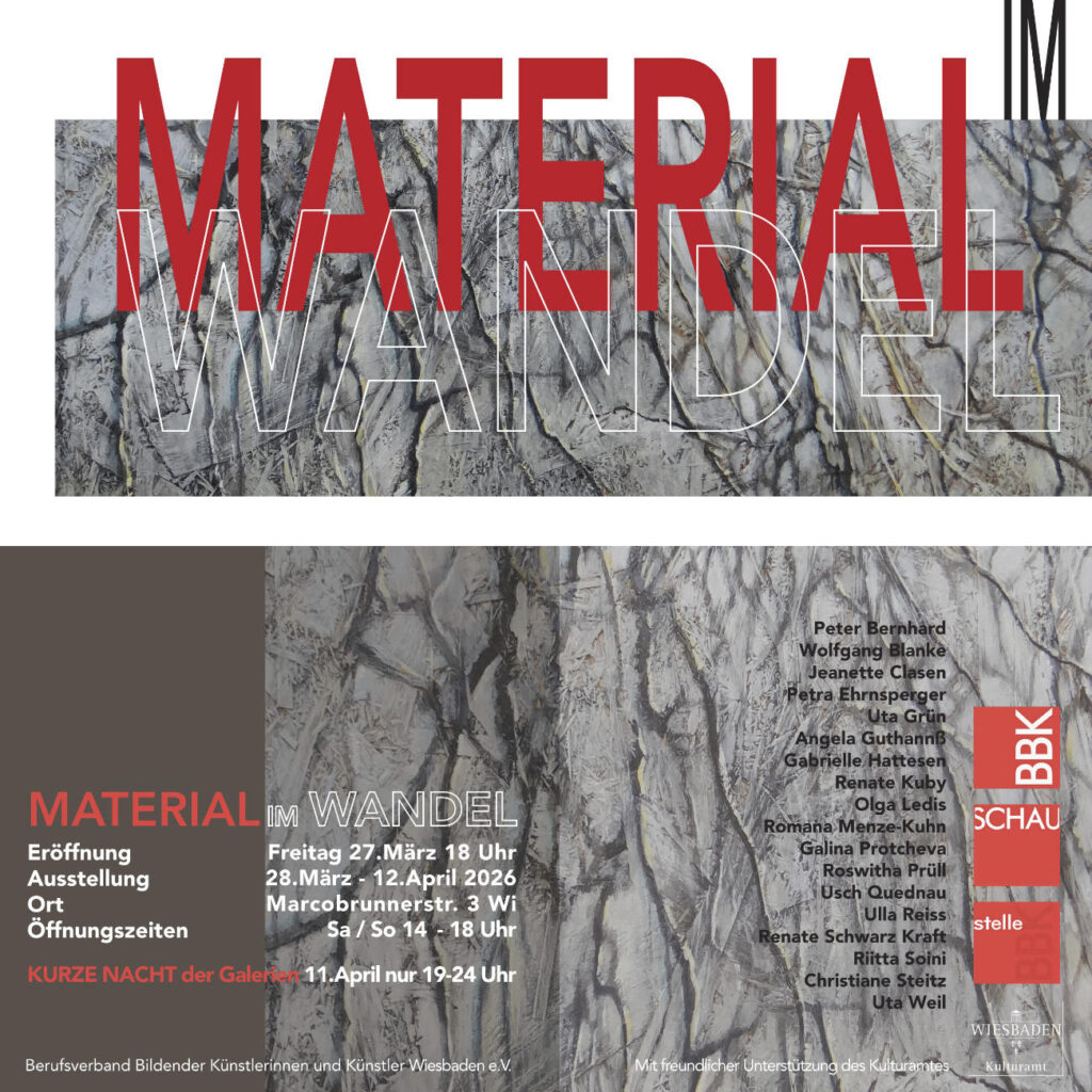 Ausstellung vom 28.3. – 12.4.2026 in der Galerie SCHAUstelle BBK Wiesbaden, Marcobrunnerstrasse 3, 65197 Wiesbaden